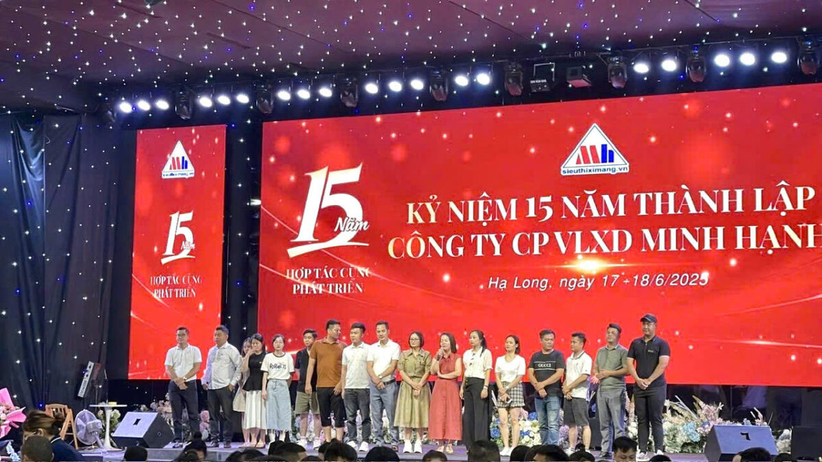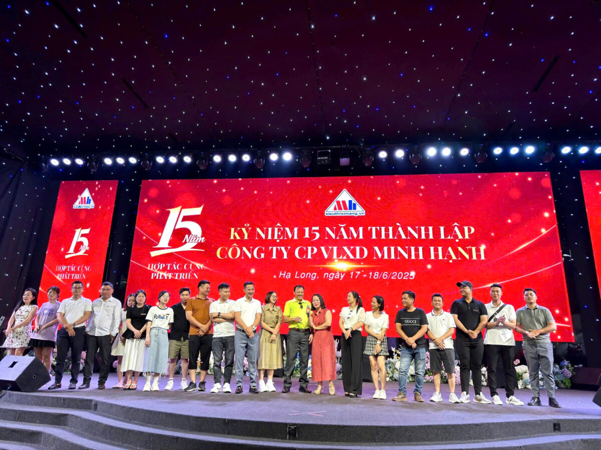 Hạ Long, ngày 18 tháng 06 năm 2025 – Vừa qua, Công ty Cổ phần Vật liệu Xây dựng Minh Hạnh đã tổ chức thành công sự kiện trọng đại “Kỷ niệm 15 năm thành lập công ty – Hợp tác cùng phát triển” tại thành phố Hạ Long xinh đẹp, từ ngày 17 đến ngày 18 tháng 06 năm 2025. Sự kiện là lời tri ân sâu sắc gửi đến toàn thể Quý khách hàng, Quý đối tác và đội ngũ nhân viên đã đồng hành cùng Minh Hạnh trên chặng đường 15 năm đầy tự hào.